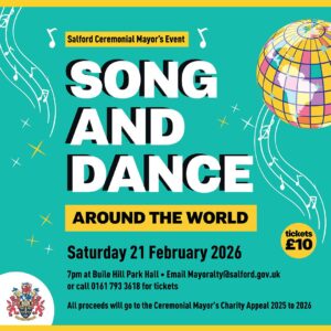 Join the Ceremonial Mayor of Salford for a night of Song and Dance from around the World.